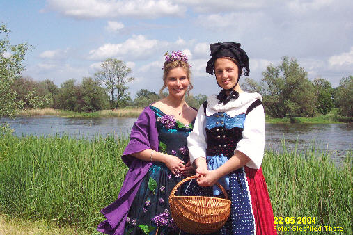 0405_101 Fliederblütenkönigin & Trachtenmädel am heimatlichen Lebuser Oder-Ufer 2004