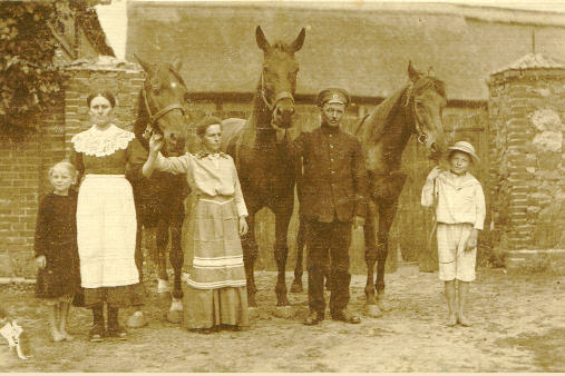 Bild 15 Haus-Nr. 211, Gruppenbild mit Pferden vor dem Grundstück Anton um 1917